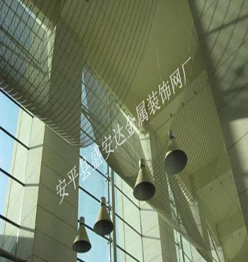 金屬裝飾網,還用于建筑物的立面、隔斷、吊頂、遮陽、陽臺和走廊、卷簾、樓梯通道以及機場車站、賓館酒店、高級別墅、博物館、歌劇院、音樂廳、寫字樓、展廳、商場等的高檔內外裝修等,尤其是天花的立體裝飾更能展現出高雅、通透及樸素大方的視覺效果。