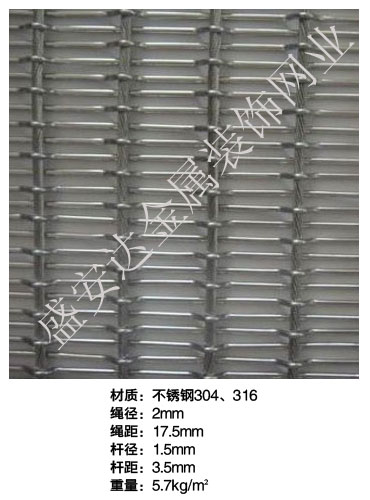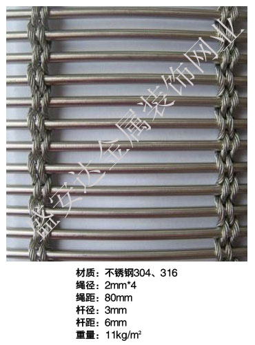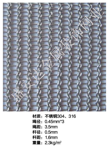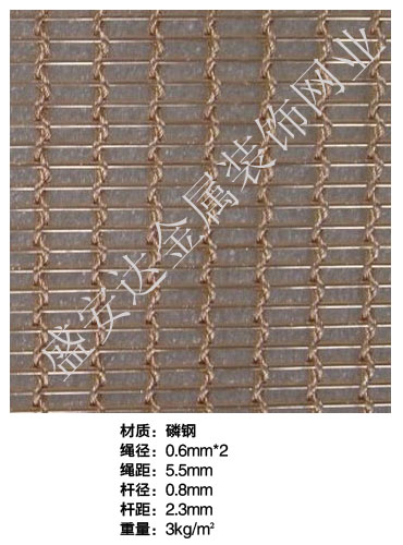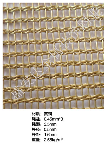 合股裝飾網本產品,采用優質不銹鋼、黃銅、磷銅編織而成,從拉絲、捻股、合繩、拋光、漂洗、織網、銷售及售后服務等方面入手,逐漸形成生產與銷售一條龍服務。產品具有經久耐用,華麗高檔,科技含量高等特點,被廣泛應用于高級建筑的窗簾、吊頂、樓梯、電梯、豪華辦公大樓、賓館、豪華舞廳、營業大廳等建筑物的室內外裝飾,在燈光照射下金碧輝煌,典雅精致。