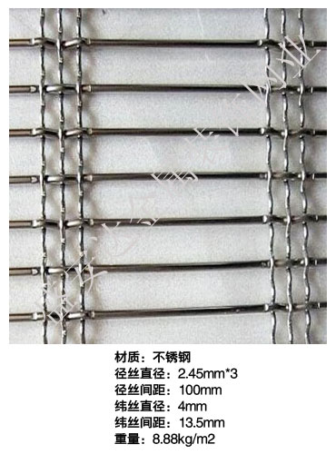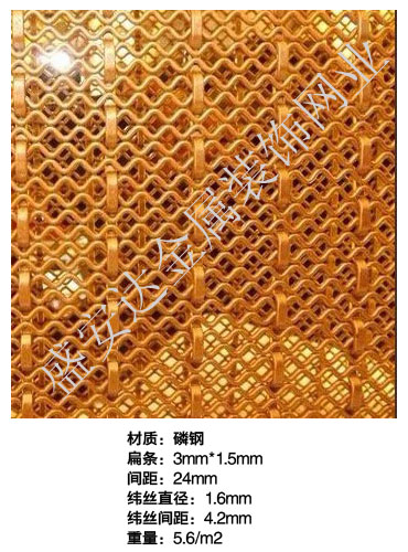本產品,采用優質不銹鋼、黃銅、磷銅編織而成,從拉絲、捻股、合繩、拋光、漂洗、織網、銷售及售后服務等方面入手,逐漸形成生產與銷售一條龍服務。產品具有經久耐用,華麗高檔,科技含量高等特點,被廣泛應用于高級建筑的窗簾、吊頂、樓梯、電梯、豪華辦公大樓、賓館、豪華舞廳、營業大廳等建筑物的室內外裝飾,在燈光照射下金碧輝煌,典雅精致。